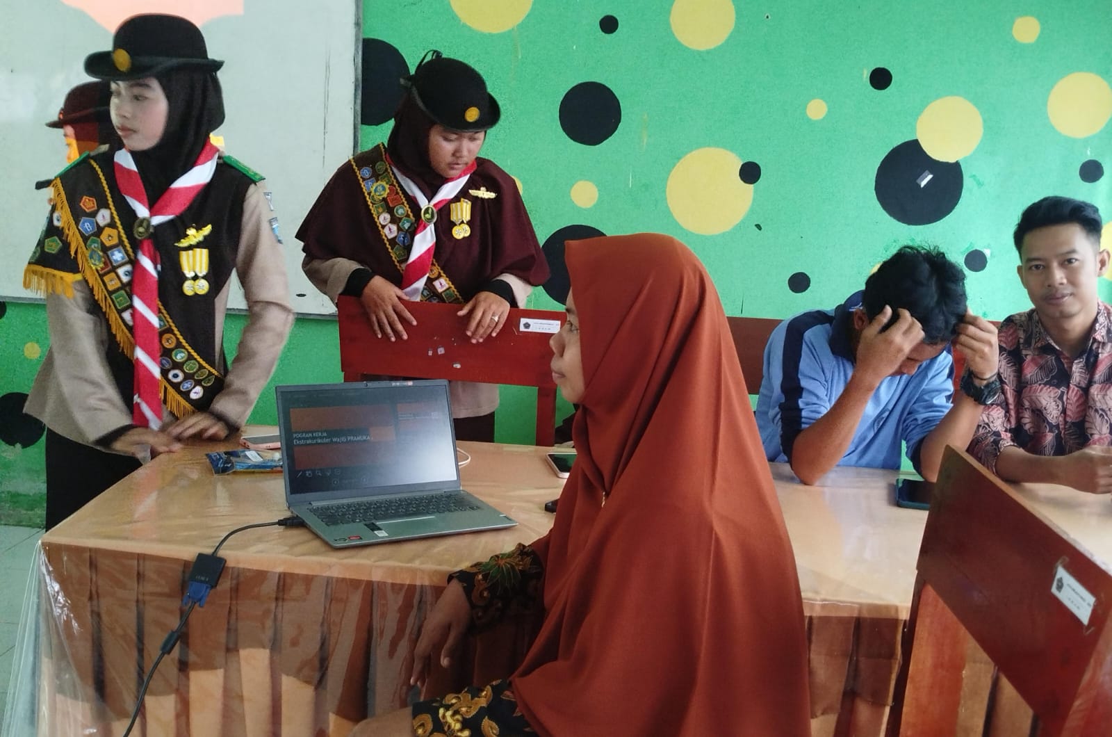 “Pada ekstrakurikuler pramuka peserta didik diajarkan untuk bisa menguasai teknik- teknik dalam pramuka, serta memberikan pemahaman tentang hidup mandiri dan bergotong royong juga saling tolong menolong.â€, Ujar Fatimah