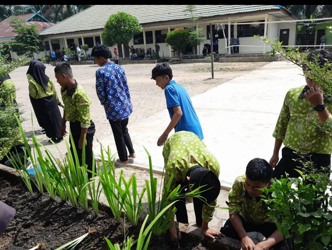 Sungai Gelam ~ Usai mendapat arahan dari Kepala Madrasah, beberapa wali kelas langsung tanjap gas melakukan tindakan. Sepeti terlihat di kelasa XI B hari ini (18/07) melakukan gotong royong melakukan pembenahan taman yang ada di depan kelas. Kelas dibawah binaan Siti Fatimah,S.Pd. tersebut, siswanya tampak kompak dan bahu membahu bergotong royong.