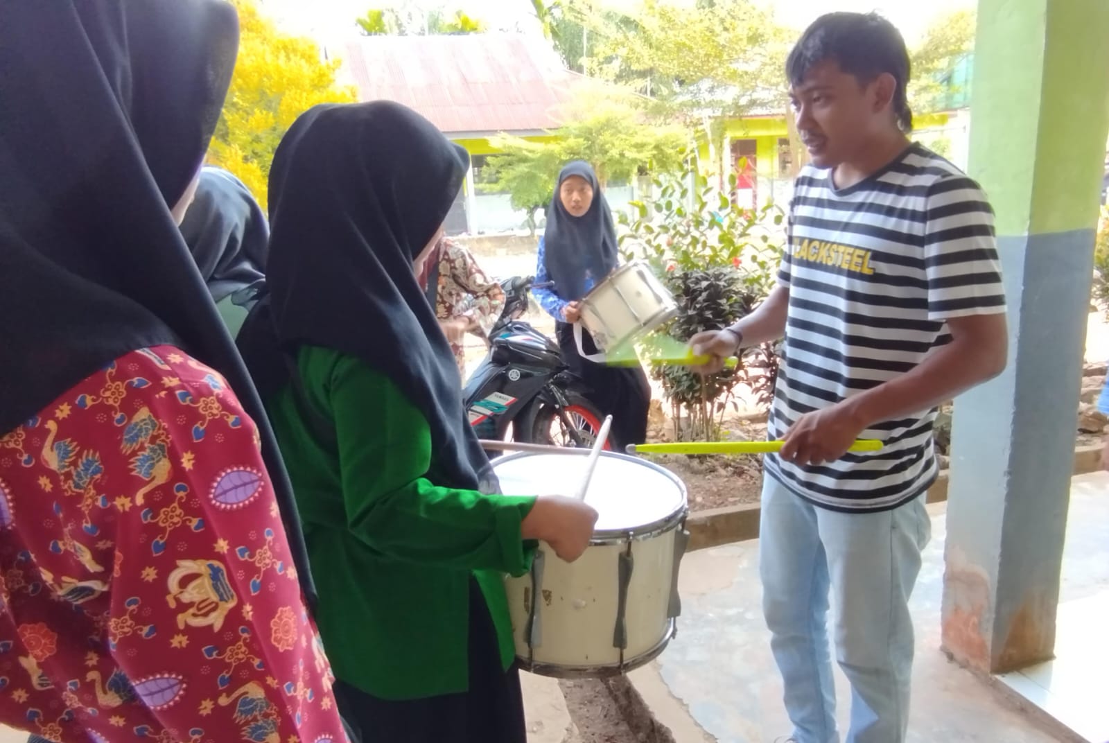 Sungai Gelam ~ Pembina ekstrakurikuler Drumband MAN 1 Muaro Jambi, Redi Saputra,S.Sn menimjau langsung kegiatan latihan yang dilaksanakan kemarin sore (25/07). Latihan dilatih oleh sang pelatih, Putri Melinda bagian musik dan Nanang Alfaris bagian perkusi. Tampak para anggota drumband antusias mengikuti latihan. Peserta kegiatan ekskul ini berasal siswa kelas X sampai siswwa kelas XII.