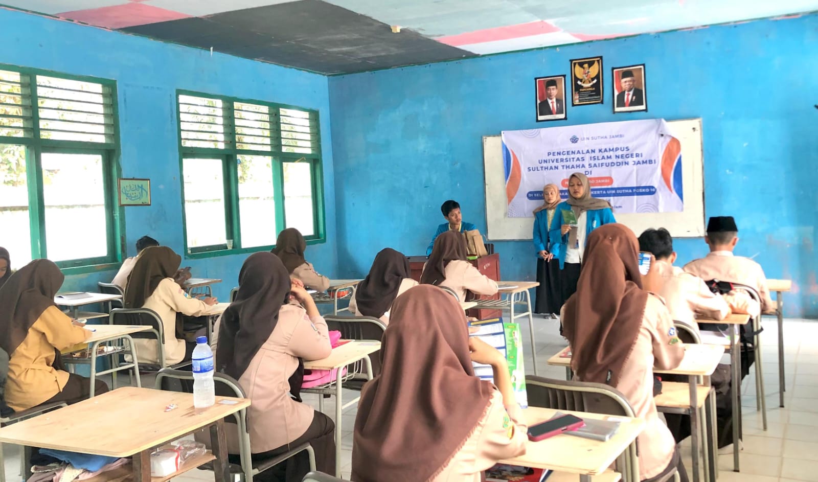 Ada beberapa kelas yang mereka kunjungi untuk memperkenalkan Kampus Negeri Islam terbesar di Provinsi Jambi ini. “UIN STS Jambi kini akan membuka fakultas Kedokteran, mudah –mudahan segera menerima mahasiswa baruâ€, ujar Anissa. Calon guru PAI ini juga menjelaskan bahwa kini Universitas Islam Negeri Sulthan Thaha Saifuddin Jambi memiliki 40 program studi dari 7 fakultas dan 7 Program Studi Pascasarjana. Ardiansyah,S.Hum. guru MAN 1 Muaro Jambi yang mendapat tugas untuk melakukan pendampingan merasa senang dengan kehadiran Annisa dan kawan-kawan.