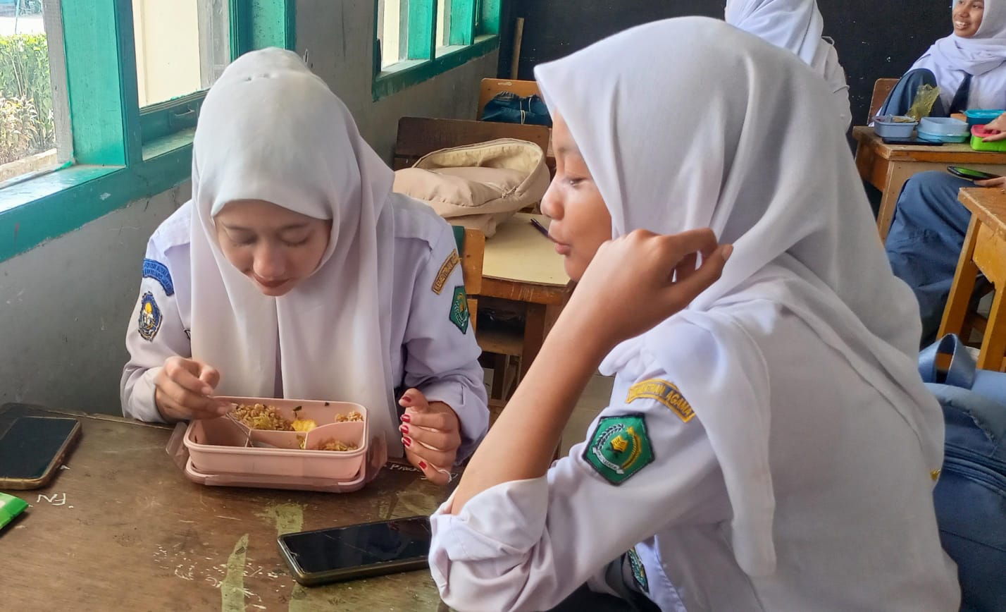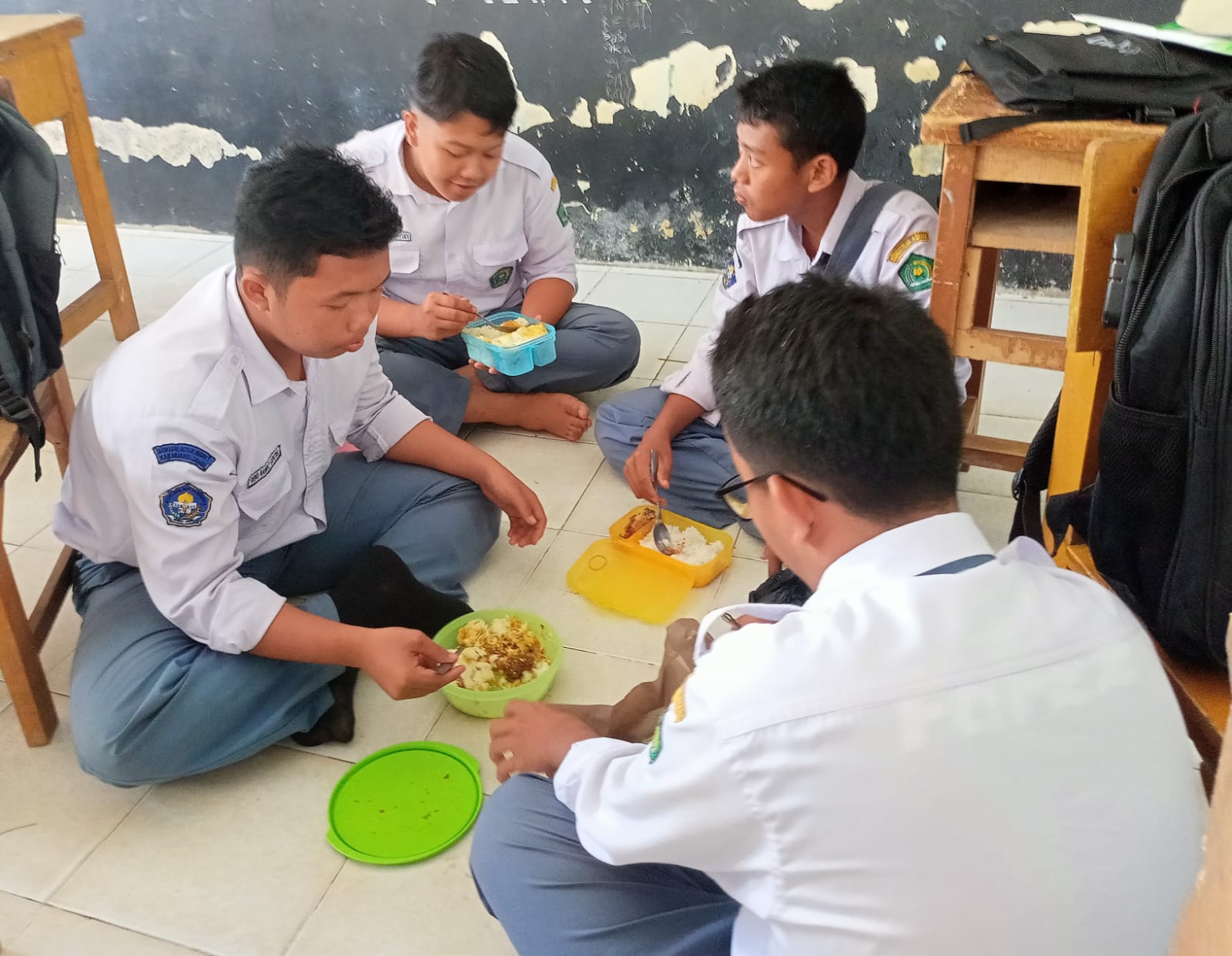 Sungai Gelam (MAN 1 Muaro Jambi) Beberapa siswa kelas XIA pada jam istirahat tidak pergi ke kantin. Mereka lebih memilih di dalam kelas untuk menikmati makanan yang di bawa dari rumah. Seperti kegiatan kelas XIA pada hari ini (05/08), mereka makan bersama di dalam kelas.