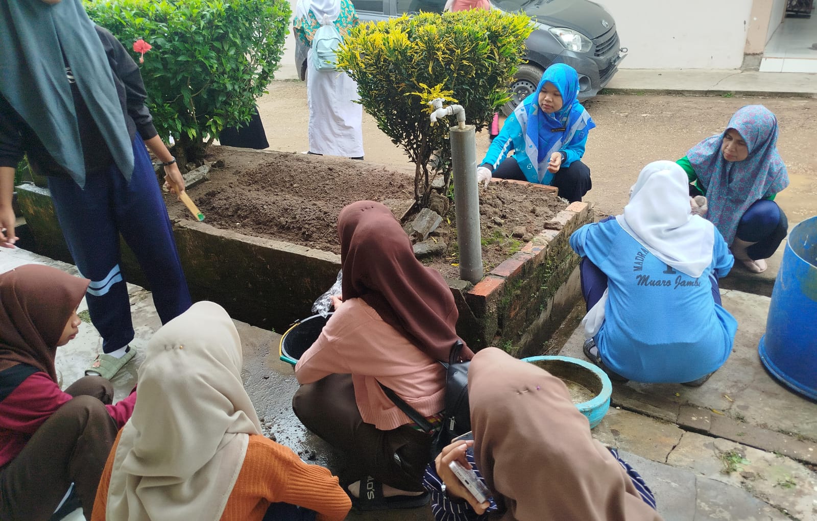 "Saya mengajak para guru pembimbing dan anak-anak bekerja sama untuk menyukseskan kegiatan aksi nyata penghijauan di MAN 1 Muaro Jambi ini", ujar Muhaiti. Usai dilaksanakan apel pagi para guru pembimbing dan peserta melaksanakan tugas seperti arahan. Beberapa anak perempuan menanam benih bayam, menanam slada, membersihkan taman-taman yang ada di depan kelas. Sementara peserta laki-laki membuat dinding pada selokan / turab agar bisa ditanami dengan tanaman hias di depan pagar madrasah.
